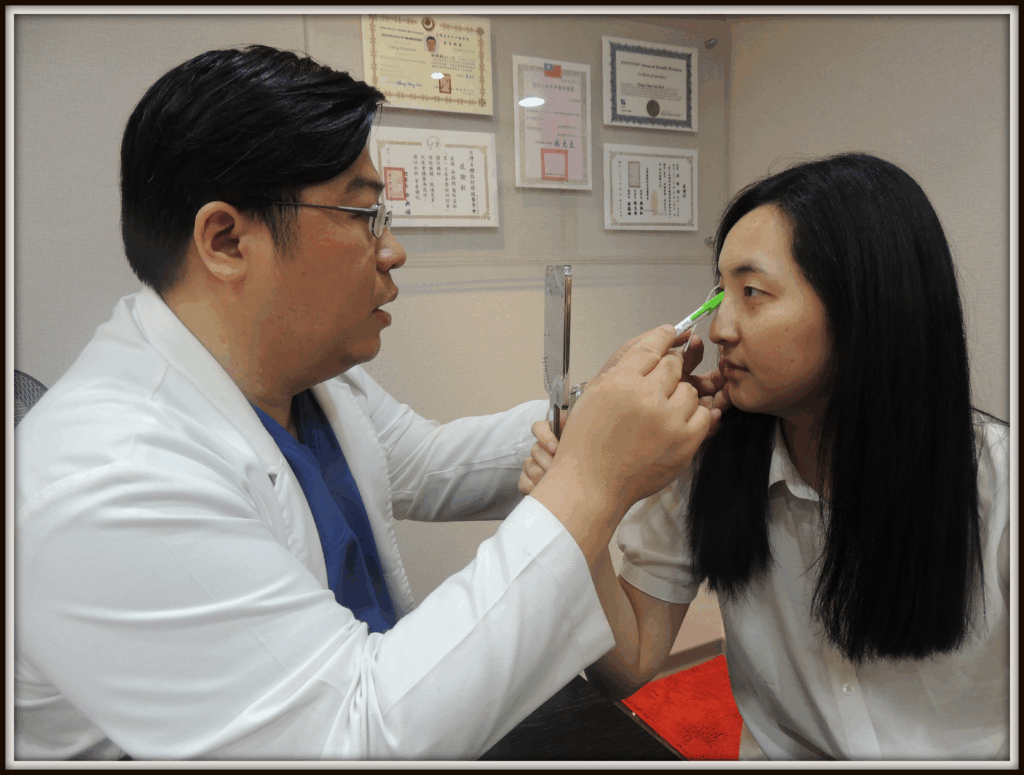 <林敬鈞醫師進行雙眼皮手術模擬與術前諮詢>