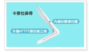 卡麥拉鼻模結合了矽膠與 Goretex 的優點——內部是矽膠核心(支撐力強),外部包覆一層 ePTFE Goretex(組織相容性高)。